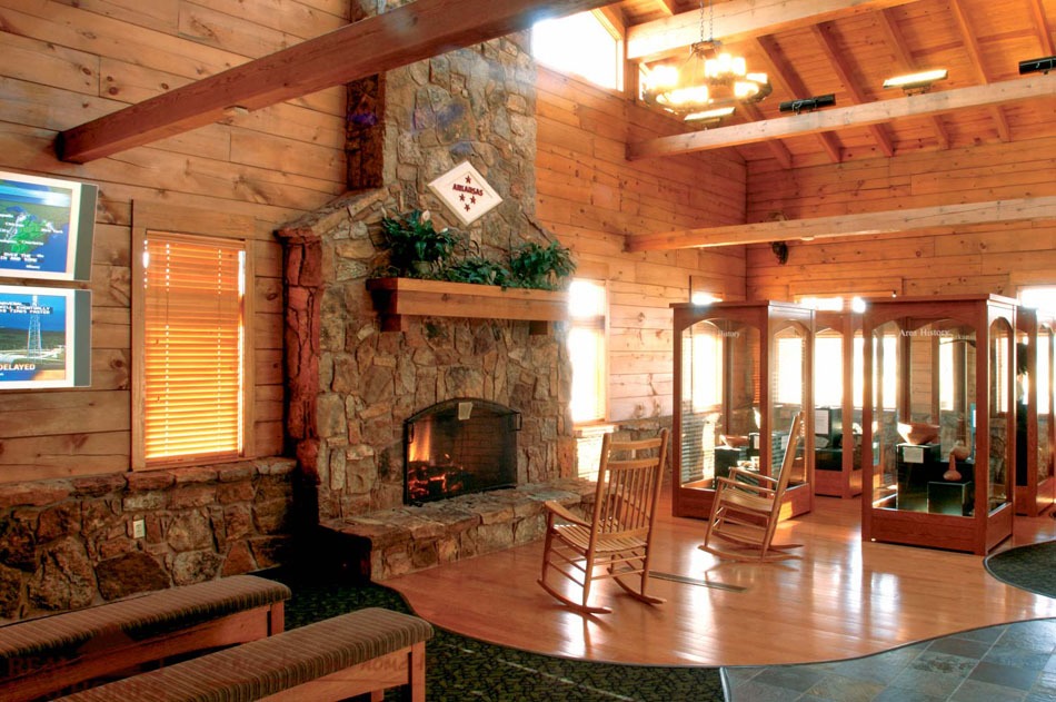 Real Log Homes has built a couple of gorgeous Welcome Centers where you can rest and get important info as you drive through Arkansas.